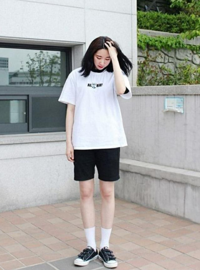 在即将到来的夏天,穿Oversized&T恤下装搭配单车裤是非常轻便的。