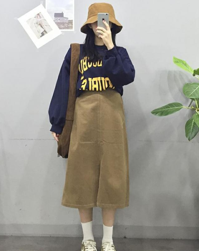 选择棉质T更飘逸的裙子,露出t恤下面的裙子,也可以选择比较硬挺的款式,把上面扎进去,根据实际身材适当调整。