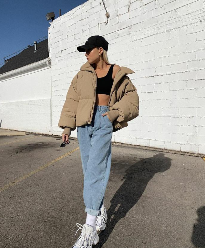 或短款上衣搭配单宁裤,单体现率性又带性感魅惑的形象。