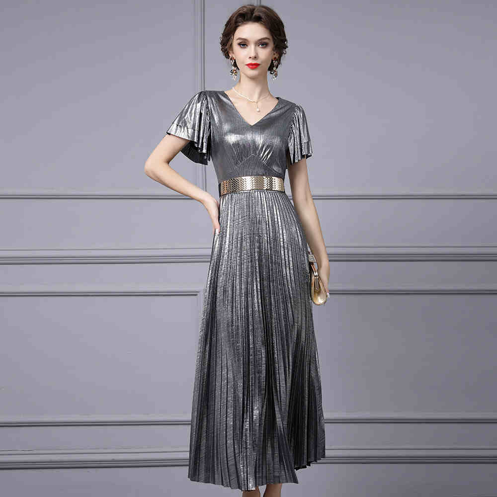 ▲2023年新款韩版复古甜美气质褶皱绑带杏色连衣裙