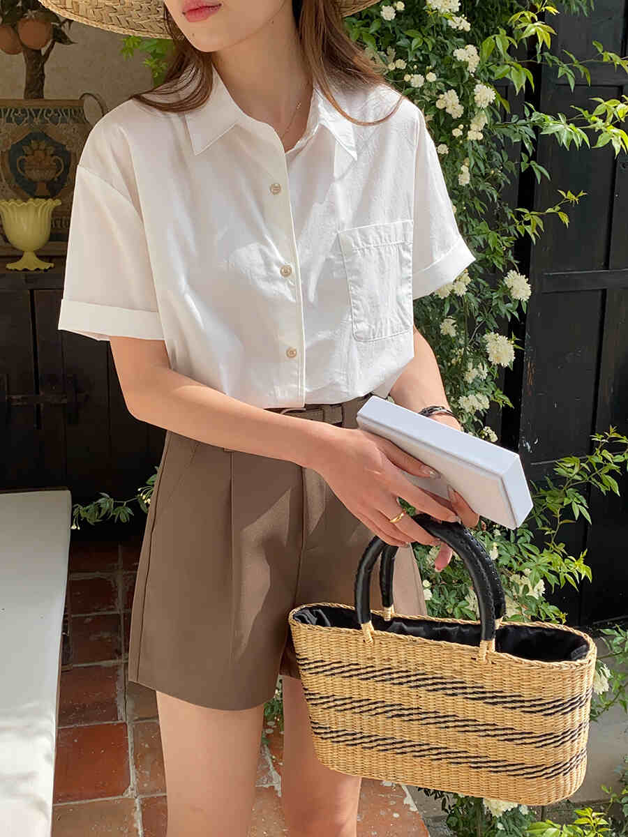 ▲法式高级感净版学院风宽松显瘦短袖衬衫