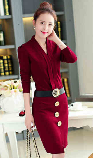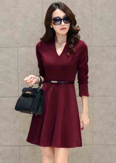 ▲V领收腰一步裙▲