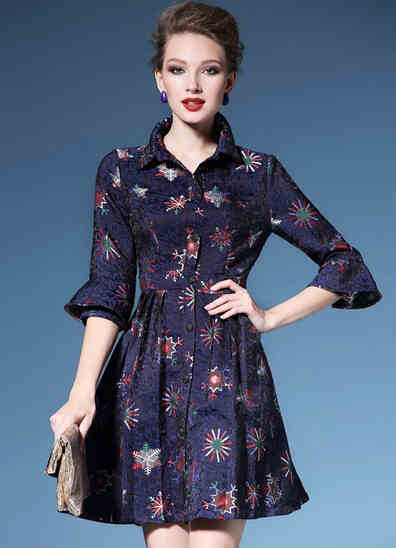 ▲喇叭袖印花连衣裙▲
