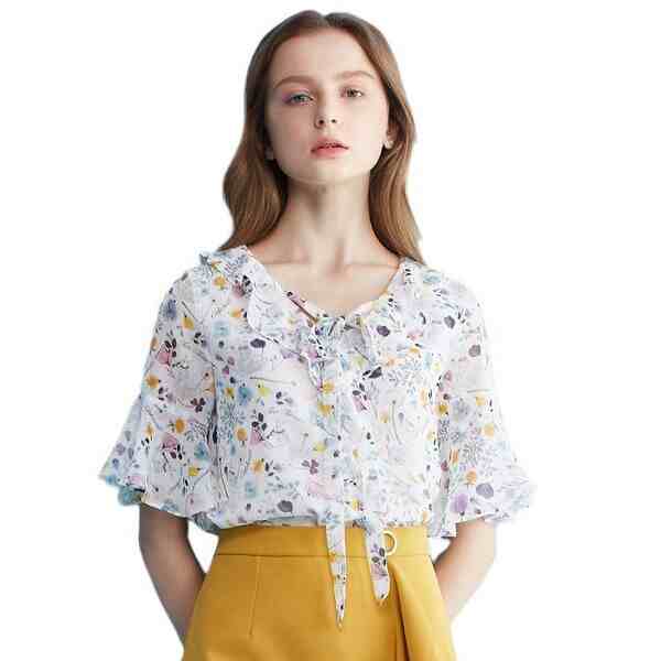 ▲雪纺衫小清新波浪形v领荷叶边▲