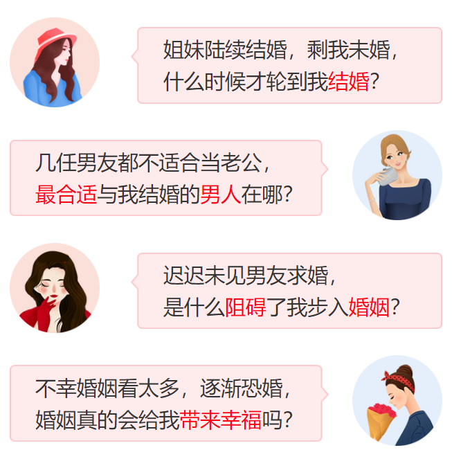 消除未来婚姻的迷茫与不安,让你对今后的婚姻有更清晰的认知。