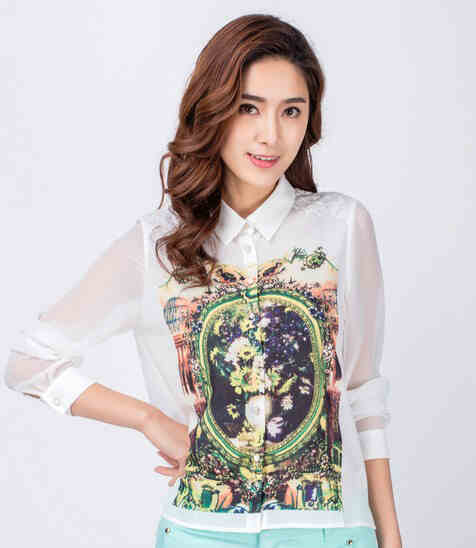 ▲印花蕾丝POLO领衬衫▲