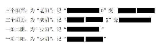 确定阴阳后,○代表阳面,●代表阴面,○●●记▔(少阴)●○○记▔▔(少阴)。