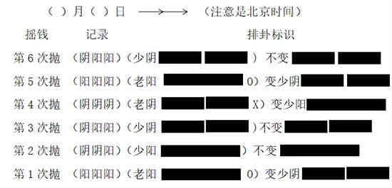 选用古币起卦的,明代之前铜钱,一般是一面有字,一面没字,有汉字为“字”,代表阴面,无字为“背”,代表阳面。清朝铜钱一面汉文一面满文,汉文为“字”,代表阴面,满文为“背”,代表阳面。六次抛钱,由上至下记录,排卦格式如下:六爻排卦详细步骤总结,非常实用!