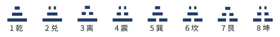 根据以上阴阳二气的三个特点“阳气向上、阴气向下”、“阴阳二气相互吸引”、“三个爻的比重越往下越重”,我们把易经八个卦用下图表示: