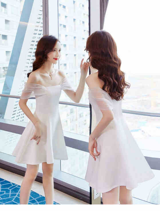 ▲新款时尚一字肩短款性感裙子▲