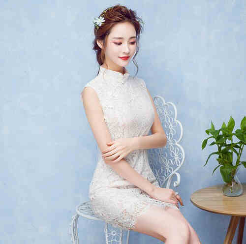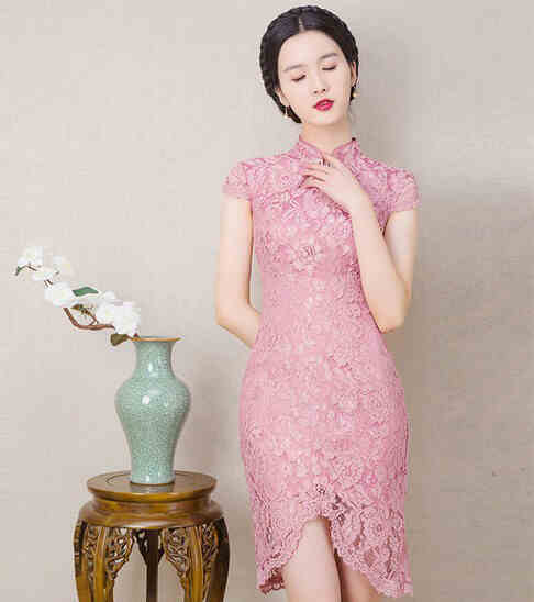 ▲修身蕾丝短款改良旗袍▲