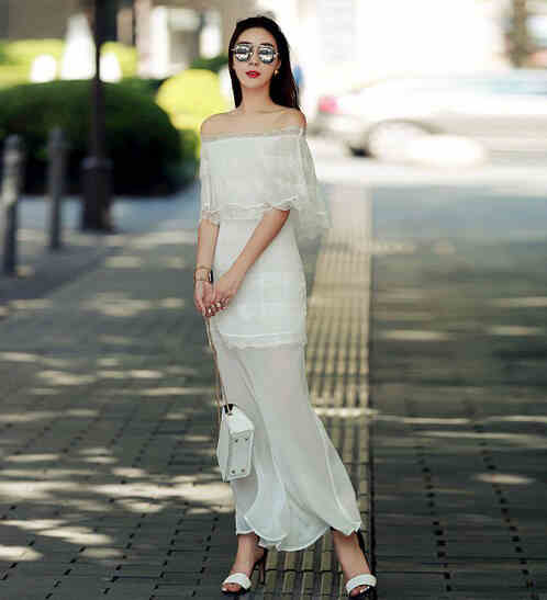 ▲露肩雪纺长款连衣裙▲