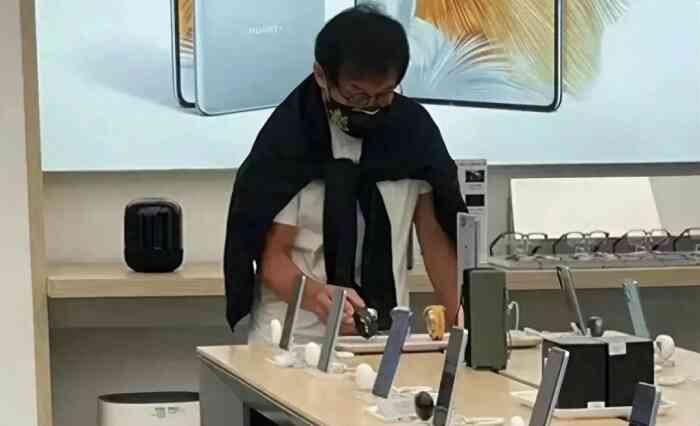 如果不仔细看,真感觉他和路人没什么两样,只见他正在华为旗舰店里,认真的研究着各种样机。