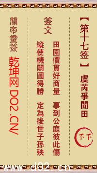 凡事在商场上,必须凭着公平及真心,不可仗势欺人,刻意剥削他人,如将事情闹上公堂,将对自己不利,甚至两败俱伤。緃使利用手段而获胜,也不是真正的胜利,公理自在人心,天地神明都看到了,其祸害将殃及子孙,所谓“不是不报,只是时候未到”,要深思。此签表示你经常违背常理行事,对私德有所损伤,怕会伤到后代,要小心谨慎。