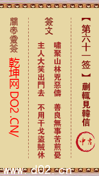 与《关帝灵签61签解签 关帝灵签第六十一详解》相关阅读: