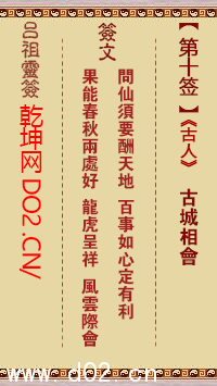 问仙须要酬天地,百事如心定有利;果能春秋两处好,龙虎呈祥,风云际会。