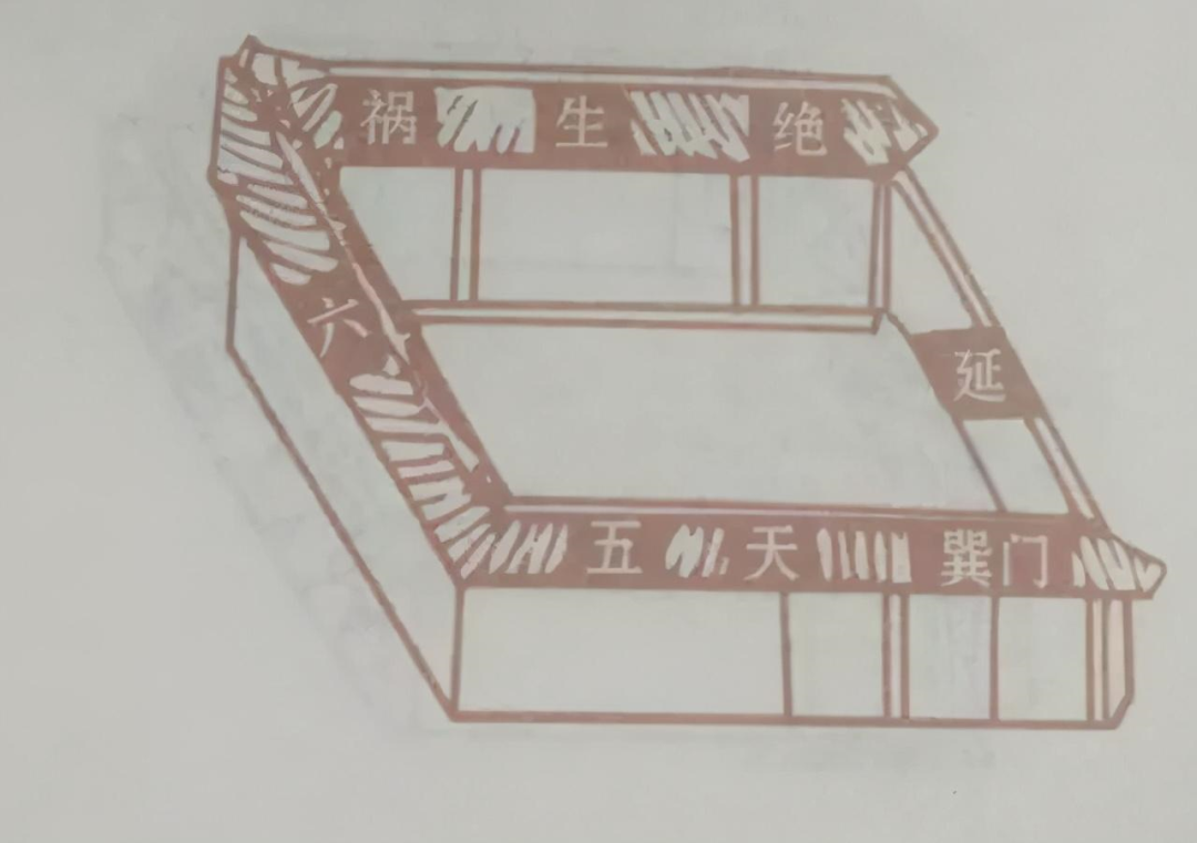 以兑门为伏位,按照"游年歌"中对应的口诀顺推,震位见绝命破军星,此外,震被金克,震为长男,此宅会祸及长子,家中会败落。
