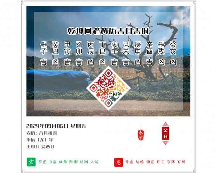 2024年9月6日老黄历择日查询,2024年9月6日老黄历上今天是黄道吉日吗?我们都希望做事能有个好的结果,而吉日吉时就能让我们得到了上天的帮助。下面,我们就来看一看老黄历的详细内容吧。