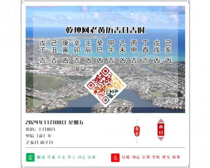2024年11月8日老黄历择日查询,2024年11月8日老黄历上今天是黄道吉日吗?每日老黄历主要用来指导我们大家的日常生活和农事活动,提供每一天的吉凶宜忌信息。下面,我们就来看一看老黄历的详细内容吧。