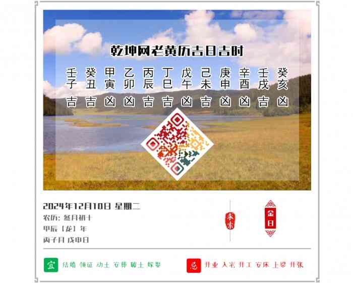 2024年12月10日黄历值神是青龙,是黄道吉日;