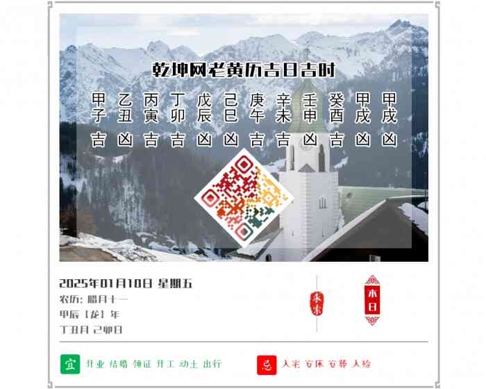 老黄历提醒:今天是公历2025年1月10日,农历腊月十一,干支为甲辰丁丑己卯,当天吉神天德值日,是一个黄道吉日。在择日上优先选择【宜】做之事,但凡适合的用事在这天举行则能顺风顺水。