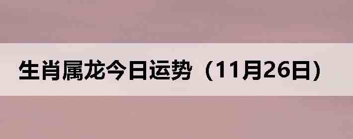 2025年11月26日属龙人今日运势查询怎么样呢?今日生肖属龙人运势会变好吗?每天看看您的爱情运、事业运、财运等,知晓宜忌,聆听老师的指导推荐。